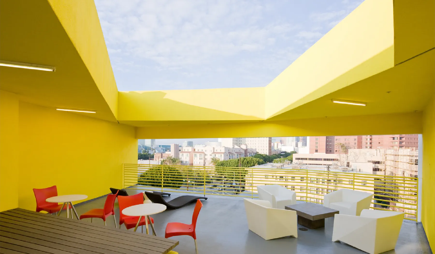 The firm describes its practice as “rooted in a deep belief in architecture’s capacity to create new physical, cultural, and social connections, and the firm’s groundbreaking work is often located in challenging locations.” New Carver Apartments, 97 units of permanent supportive housing, occupies an extremely challenging location, in downtown Los Angeles beside the 14-lane, 10 freeway.