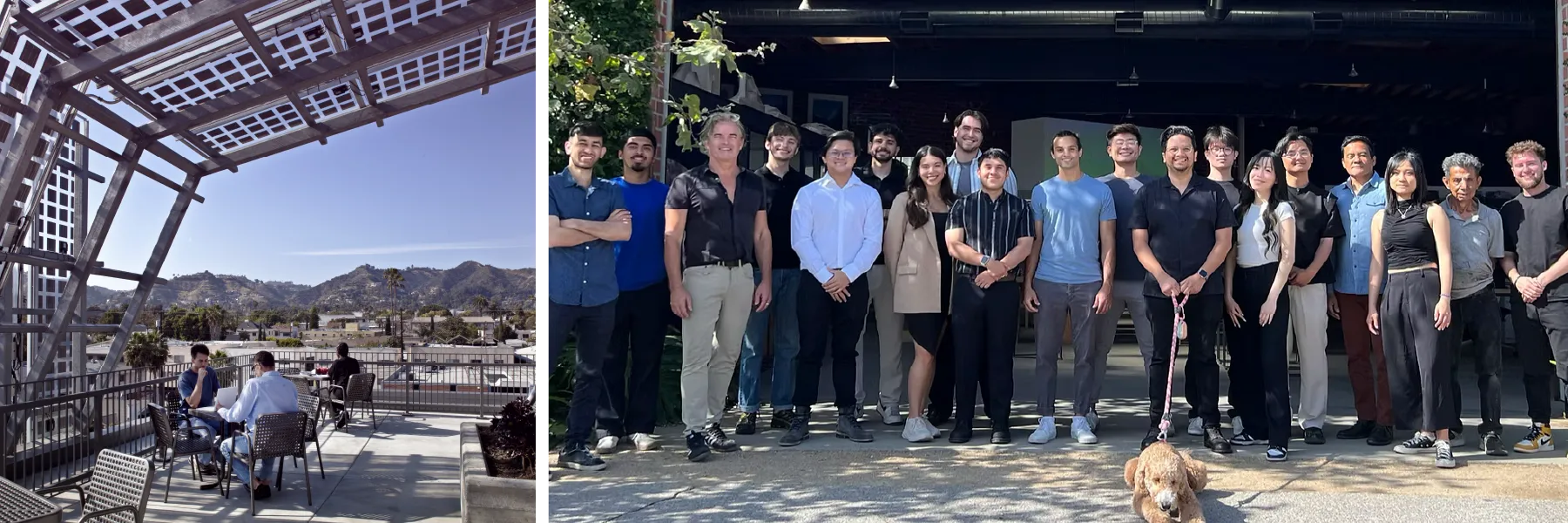Top: Sierra Bonita elevation. Photo by Art Gray; Bottom left: Sierra Bonita, roof terrace. Photo by Art Gray. Bottom right: Patrick Tighe Architecture team (Patrick Tighe, 3rd from left). Photo by Patrick Tighe Architecture.