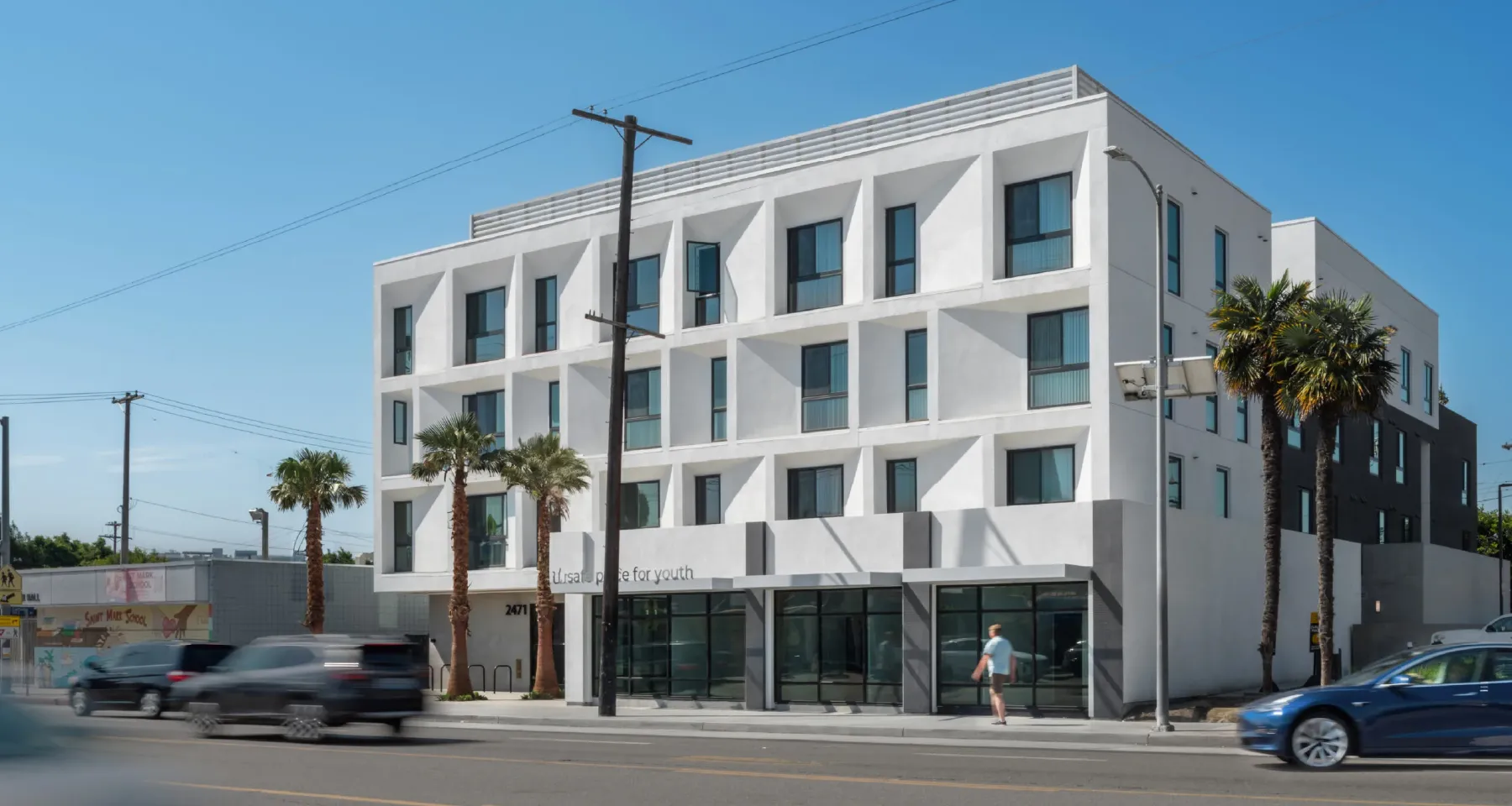 Studio One Eleven is based in Long Beach, where it is playing a central role in the area’s downtown revival. The Journey (2024), in Venice, is a 100% affordable, supportive housing complex for young people transitioning out of foster care, some families and some people who had been living on the streets. The dwellings are above a service center on the ground floor, Safe Place for Youth (SPY).